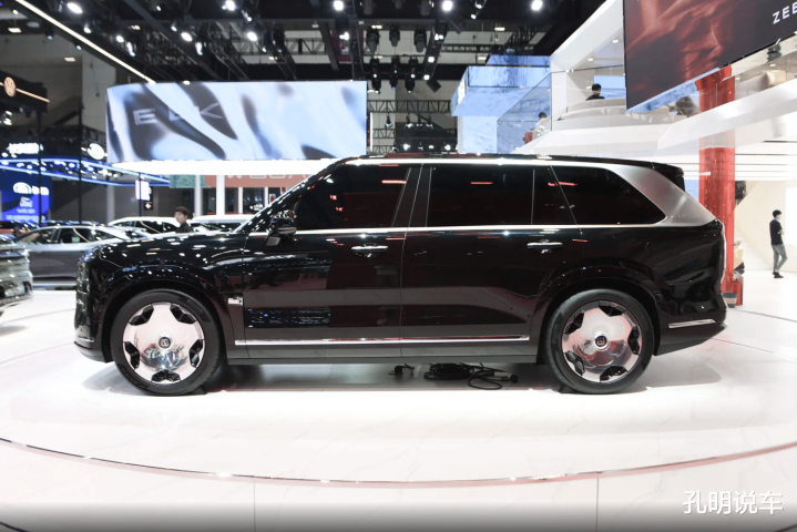 外观造型设计和以往的极氪品牌车型明显不同,特别是和经典的极氪001等初代产品完全就不是一个频道的设计。车头前脸方方正正而且采用比较复杂的造型搭配,两侧灯光半环绕样式,车头大尺寸直瀑式进气中网有点类似劳斯莱斯库里南的气质,而侧面看并没有太多余的装饰,整个车身腰线和车顶都很平坦,细节上有类似迈巴赫那种大饼轮毂设计。